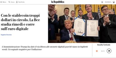 Interview with Eugenio Occorsio on stablecoins and digital euro Repubblica Affari & Finanza,